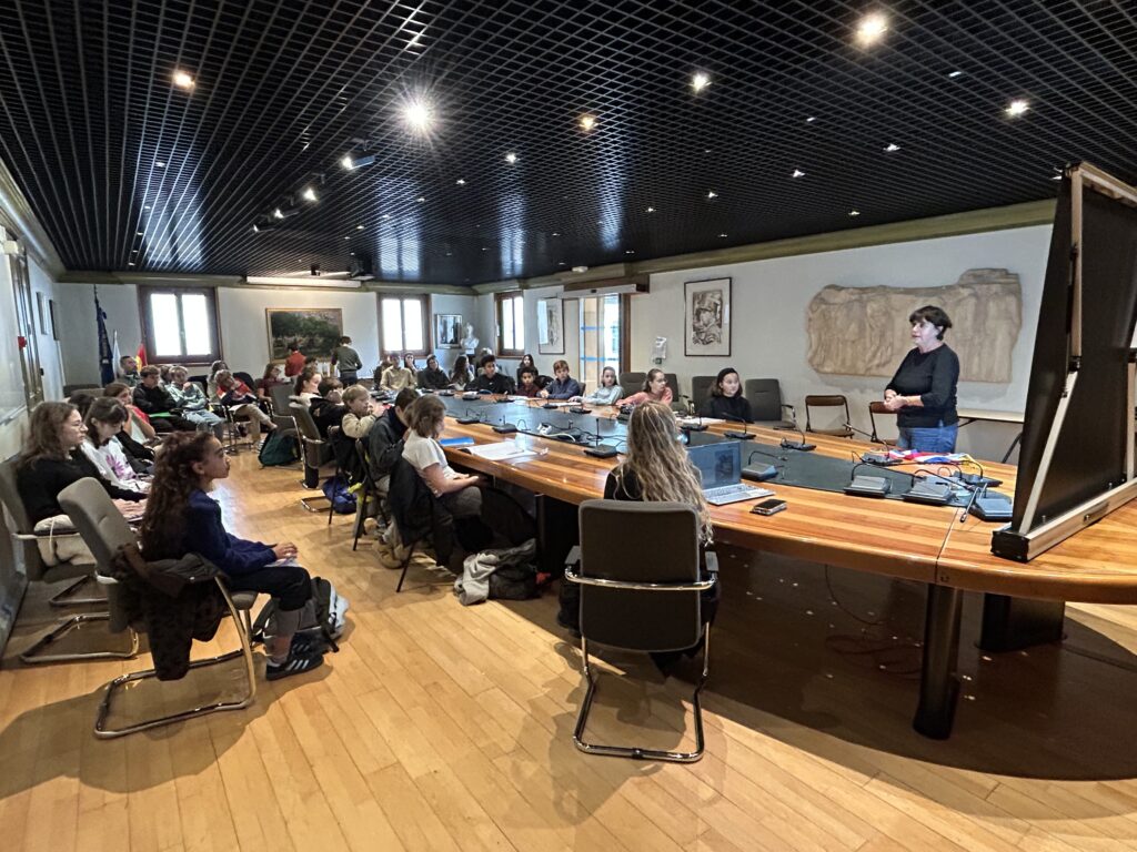 Les délégués et éco-délégués du collège ont eu l’opportunité de rencontrer Madame le Maire d’Evian, Josiane Lei, dans la salle du conseil municipal.